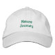As palavras Nature Journey bordadas num chapéu