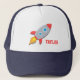Este chapéu é grande para os astronautas pequenos que são acima para uma aventura do espaço que explora a galáxia dos planetas e das estrelas! Vem com um navio bonito do foguete que sopra fora. Personalize com nome de s.