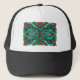 Este boné de bola tem um ornamentado irlandês Celta de cor brilhante com laços e formas em verdes, azuis, vermelho e preto com quatro cabeças de dragão vermelho com chifres dourados.