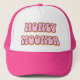 Chapéu de caminhoneiro para noiva com tema retro dos anos 70 com fonte retrô e cores rosa e laranja. Este chapéu é o presente perfeito para uma noiva, chá de panela ou celebração de despedida de solteira, para que ela possa usá-lo na lua de mel. As cores são editáveis! Clique em 'editar design' para criar suas próprias cores. ©Marisu Valencia