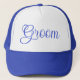 Boné de Beisebol Estilo Caminhão Personalizado na cor azul real e branco impresso com Noivo em tipografia de texto azul real e design gráfico digital pela TheFabricSeal loja de impressão sob demanda na Zazzle.com #ZazzleMade https://www.zazzle.com/store/thefabricseal TheFabricSeal Original.