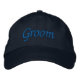 Boné de beisebol ajustável básico de roupa alternativa com bordado personalizado na cor azul-marinho escuro com tipografia de texto "Noivo" em azul real e design gráfico digital por TheFabricSeal loja de impressão sob demanda no Zazzle.com #ZazzleMade https://www.zazzle.com/store/thefabricseal TheFabricSeal©️Original.