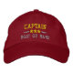 Veleja em estilo com um vermelho personalizado com bordado dourado e prateado que contém sua classificação de Capitão ou outro título, seu Nome ou Nome do Barco e estrelas. Várias cores de boné e thread a serem escolhidas. Faz um presente personalizado excelente para Dia de os pais, Dia de as mães ou qualquer ocasião.