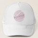 Pink Personalizado Personalizado e Tênis de Cinza Cola Monograma Design de Nome em um caminhoneiro totalmente branco que apresenta um nome de script elegante, moderno, divertido e fofo ou texto personalizado. Altere as cores e a fonte usando o Editor de Modelo da Ferramenta de Design. Crie um conjunto para oferecer como presente para seu tênis player favorito ou como favoritos para festas luxuosos em uma festa de aniversário ou celebração de tema tênis.