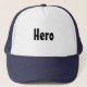 Nome do Texto Herói com Chapéu ou Bonés de Caminhoneiro Branco e Cor do Marinho. Você pode editar ou alterar o nome do texto.