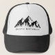 Um cenário clássico do PNW é apresentado neste chapéu de caminhoneiro: pinheiros e uma cordilheira.
