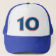 Chapéu feito sob encomenda do número dez com número azul e vermelho 10