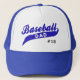 Você será um Pai de beisebol orgulhoso com este boné azul e branco de "Pai de beisebol". O número do jogador do seu filho está abaixo do roteiro.