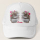 Este chapéu do dia dos namorados caracteriza dois esquilos vermelhos adoráveis na neve branca macia, cercada de cor, assim no amor! O texto pode ser personalizado ou suprimido.