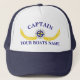 Personalize estes barco ou navios compasso e chapéu yachting temático náutico do capitão dos marinheiros da folha do louro com o nome de seu barco da vela ou de motor e personalize o modelo do texto dos capitães com um outro membro de seu grupo de navios. Personalize a cor do texto à coordenada com a cor de seu boné.