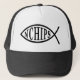 " Pesque microplaquetas de N" uma sátira ateu no símbolo dos peixes de Jesus.