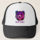 design engraçada e desenhada de um panda legal em cores pretas, burgundy e ouros com a citação engraçada "OH BEAR" Trucker Hat.