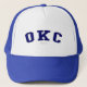 Verifique para fora este chapéu de OKC! É você do Oklahoma City, Oklahoma? Você tem um amigo ou um membro da família que amem o Oklahoma City, Oklahoma? Em caso afirmativo, este chapéu da "bandeira" é exatamente o presente que você está procurando! As características de design "OKC" na rotulação arqueada do marinho na pia batismal clássica da faculdade.
