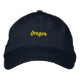 Um chapéu bordado de Oregon. Este chapéu foi desenhado usando as cores oficiais do Oregon: Marinho Azul e Dourado! No entanto, se você não gosta dessas cores, elas são personalizáveis!