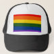 Bandeira grande do arco-íris em um chapéu do estilo do camionista.