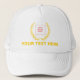 Imagem de Laurel Wreath de cor amarela, modelo de cor vermelha que você pode mudar para sua foto ou imagem pessoal, modelo de texto que você pode mudar para sua própria imagem. Um produto de tipo, único, personalizado e engraçado para qualquer um. Bom para presentes e parabéns. Você pode alterar ou excluir todas as imagens e o texto. Divirta-se. NÃO SE ESQUEÇA de alterar a cor do medicamento de acordo com as suas necessidades. Boné Trucker.