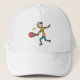 O jogador de Tênis Padel joga a bola num design divertido mostrando jogador, raquete de padel e bola.