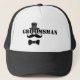 Chapéu do camionista do padrinho de casamento com motivo do chapéu alto e do moustache e rotulação do estêncil. O excelente para noites e recepções de casamento quando as formalidades são excedentes e ele do veado é hora de party. (veja t-shirt, botões e chapéus de harmonização para o noivo e o melhor homem) clique personalizam se você gostaria de adicionar ou remover os objetos e o texto do design.