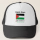 A bandeira palestiniana de preto, vermelho, branco e verde, com a palavra PALESTINE, abaixo, nas cores da bandeira. Acima de você encontrará um lugar para o seu nome personalizar este chapéu de caminhoneiro. Ou criar um presente personalizado adicionando o nome de outra pessoa.