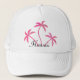 Boné de beisebol bonito de Havaí com as palmeiras cor-de-rosa e algum efeito da faísca e do brilho no design. A área do modelo pode ser personalizada com seu destino tropical favorito.