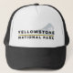 Texto do parque nacional de Yellowstone com design da montanha. O parque nacional de Yellowstone contem sobre 3500 acres do parque natural espalhados sobre Wyoming, Idaho, e Montana. Senta-se sobre o caldera vulcânico de Yellowstone e os geysers naturais das características.