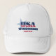 Chapéu de caminhoneiro de Wisconsin. Design de tipografia ousada com uma estrela azul que destaca o estado de Wisconsin, nos Estados Unidos, em 1848, e as iniciais dos EUA se infundiram com as estrelas e listras da bandeira americana. Faz um presente patriótico ou lembrança maravilhosa.