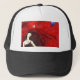 Um chapéu do camionista que caracteriza a pintura original, "pensando sobre o amanhã" por Bryan A. Collins.