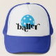 Chapéu de camionista azul-chamas engraçado e ciano com cores amarelas brilhantes editáveis ícone de picleball e "chamariz" em uma fonte de bloco serif de moda, perfeito para o jogador de picleball.