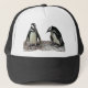Este chapéu caracteriza dois pinguins africanos adoráveis que estão em uma borda rochosa. São os pássaros aquáticos, flightless cujas as asas têm aletas tornadas. Cada um tem uma listra preta e uns pontos pretos na caixa. O teste padrão dos pontos é original para cada pinguim, apenas como impressões digitais humanas. Têm as glândulas cor-de-rosa acima de seus olhos e os pés cor-de-rosa e pretos.