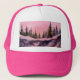 Boné Pinheiros com serra coberta de neve em sol rosa
