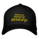 Celebre Pittsburgh, a cidade que tem tudo! times esportivos excelentes, ambiente excelente, lugar excelente para viver! Pittsburgh Pensilvânia! Palavras bordadas amarelas repetem o nome PITTSBURGH três vezes. Parece excelente no chapéu preto.