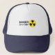Símbolo de risco de radiação na ordem de pizza e fatias de salsicha. Perigo - Texto quente e jovem. Design engraçada e humorística para um bom humor e festa de Halloween.