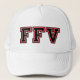 "FFV" Primeira Família de Chapéu de Virgínia com letras vermelhas e negras