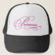 Chapéu preto e branco do camionista com a princesa escrita no tipo do roteiro do rosa quente.