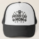 Show off your feline-loving spirit with this "Proud Cat Mom" trucker hat. Designed with a clean white foam front and breathable black mesh back, this cap offers both comfort and style. The bold, black typography is accented by a variety of paw print graphics, creating a fun and energetic look. Whether you're a rescuer or just a devoted cat parent, this durable snapback hat is a must-have addition to your casual wardrobe. It makes a thoughtful gift for birthdays, Mother’s Day, or "Gotcha Day" celebrations for any cat enthusiast.