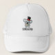 Um chapéu de caminhoneiro com uma design engraçada e humorística com uma ilustração de um coala giro vestindo um chapéu preto com o texto da tipografia abaixo, que diz superkoalaficado.