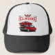 Esta é uma renderização de um carro músico clássico americano vermelho com gráficos de estilo vintage em segundo plano para um olhar retrô.