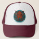 A red octopus on a hat or cap. Use "Edit this design" to change the text and create a unique, customized item. Featuring a cartoon of a rust red octopus with a mean frown, curling tentacles spread in all directions and fleshy colored suckers exposed. A shoal of fish stream past in the background. For fans of octopuses and cephalopods with attitude.