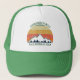 Legal chapéus de reunião familiar personalizados para um outono se reunirem com primos, tias, tios e avós. Peça bonés correspondentes para toda a tripulação com seu sobrenome e ano em verde ao redor da bela imagem do pôr do sol no outono sobre montanhas e árvores. Excelente personalizado, para todos, presentes de manutenção de acampamento de grupo para todos.
