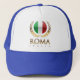 Roma, Italia | a bandeira italiana (d'Italia do bandiera do La, ou de tricolore do IL italiano- vermelho, branco, e verde), cercada por uma grinalda dos louros, que seja um símbolo romano tradicional. Aqui, o louro tem um significado dobro: na cultura romana representa a vitória, poder, e honra, quando na tradição cristã, simbolizar a ressurreição do cristo.