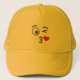 Um emoticon beijante. Um olho está aberto, o outro está piscando. Um coração é mostrado deixando a boca beijando.