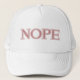 Sarcástico Humorous Blush Pink Glitter Nope Trucker Hat apresentando sua resposta favorita em fabulosa brilho brilhante! Projetado pelo designer Zazzle pro BK Thompson exclusivamente para Buttons e o Treasure Shoppe de Joe.