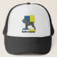 Miniatura de Schnauzer, silhueta de cão padrão ou gigante, linha de abstrato em fundo tricolor amarela, azul e preta. Personalize com o seu nome ou o nome do seu cão. Procurando o presente perfeito de Dia de os pais para o amante do cão em sua vida? Não olhe mais do que este boné de bloqueio de sol que chama a atenção apresentando uma silhueta impressionante de raça canina.