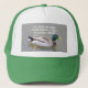 Boné de caminhoneiro com foto de pato e texto que diz: "Se parece com um pato e grita como um pato, provavelmente é um pato".