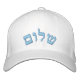 "Shalom" (paz) bordado em letras hebraicas, totalmente personalizável para seu próprio texto e cores com o botão "Personalizar!".