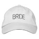 White baseball cap with bold black "BRIDE" text, perfect for bachelorette parties, bridal showers, honeymoon, or wedding day prep. A stylish and fun bridal accessory.