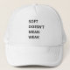This striking, clean, and minimalist design features the powerful and inspiring phrase: "SOFT DOESN'T MEAN WEAK."