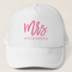 Mostre seu novo sobrenome com este bonito chapéu com um moderno roteiro de pincel em rosa quente.