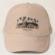 Uma versão de estilo vintage do logotipo de nossa marca, com uma superfície e paisagem de palmeiras