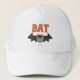 Um morcego preto do Halloween e um texto laranja que diz "BAT" em t-shirts de morcegos, fatos, canecas, cartões, autocolantes, sacos de tote, botões, ímãs e outras t-shirts e presentes MTD do Halloween.